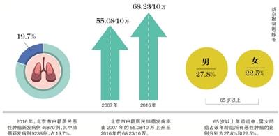 7月11日,北京市衛生計生委發布的《北京市2017年度衛生與人群健康狀況報告》(以下簡稱“白皮書”)顯示,北京市戶籍居民肺癌發病率增長4.8%,已連續多年位居惡性腫瘤死亡首位。專家指出,肺癌的高發與生活方式息息相關,香煙煙霧、PM2.5、油煙、化學氣體、怒氣等這“五氣”是導致肺癌的罪魁禍首。